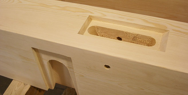 Our timberframes are also used in many hybrid and decorative applications. We also at times integrate various log work into our frames. Ask us about our decorative gables, brackets and 2x6 T&G decking.