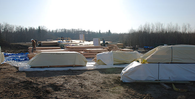 A representative of HübertHaus will accompany the timberframe to the project location and install the timberframe utilizing the client's sub-trades and or the clients themselves. The result is a very positive and enjoyable experience for all involved. HübertHaus' timberframes are very easy to work with and to install. In general the average home of approximately 2,500 square feet will take only three days or less to complete.